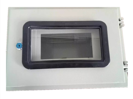 2、箱體分上箱體、下箱體(為斜面式吻合,吻合面上下端部箱體為弧型)。上下箱體用不銹鋼合葉連接,由橡塑條密封,下端安裝不銹鋼吊扣以壓緊。前開門帶觀察窗,有傾斜式防雨頂蓋,門與箱體之間采用防濺結(jié)構(gòu),能防雨防塵,適與室內(nèi)外安裝;